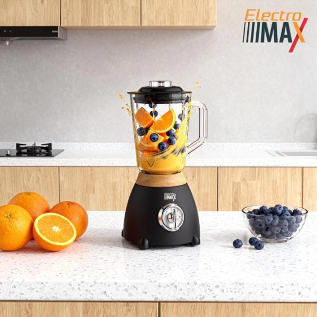 בלנדר חשמלי מבית Electro Max מציע פתרון אידיאלי להכנת מיצים ושייקים, עם עוצמה של 500W ונפח של 1.5 ליטר.