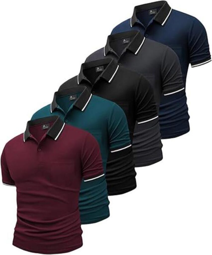 - סט משתלם – חמישה חולצות פולו עם כיס, בעלות עיצוב אלגנטי ונוח.