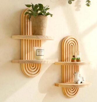 מדף עץ דקורטיבי לתלייה על הקיר בעיצוב מודרני
