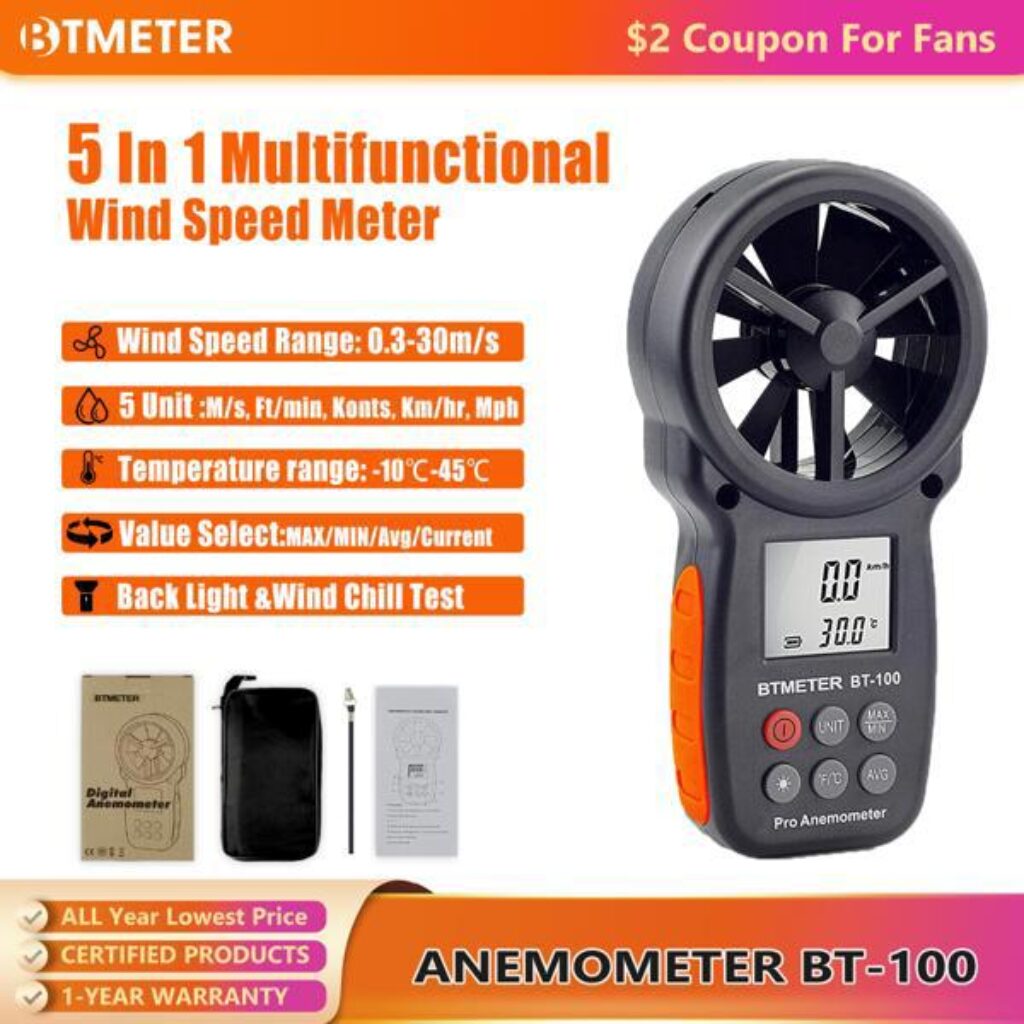 - טווח מהירות רוח: 0-30 מטר בשנייה, מושלם למדידות מדויקות.