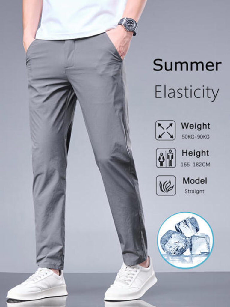 מציגים מכנסי קיץ אלגנטיים לגברים, עשויים מבד נושם ואוורירי. המוצר הזה מציע שילוב מנצח של נוחות וסטייל, מושלם לימים החמים.