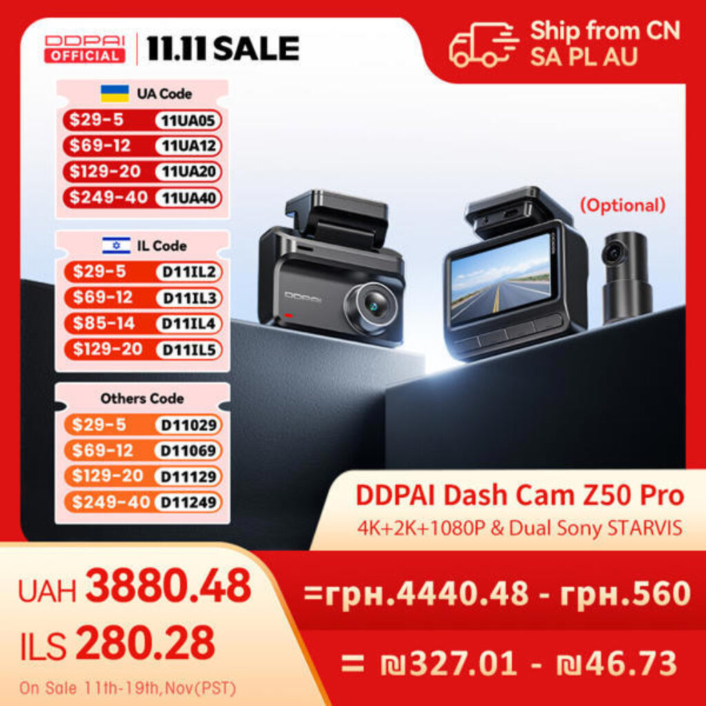 🔥 מצלמת רכב DDPai Dash Cam Z50 Pro 🔥