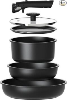 **סט סירים ומחבתות Nonstick מבית CAROTE עם ידית מתפרקת**