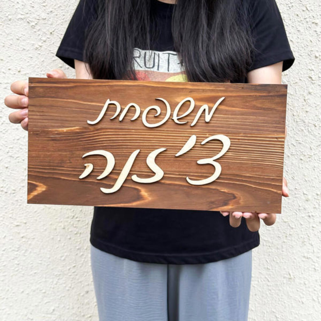 שלט מעוצב מעץ בעברית לבית עם כיתוב בולט